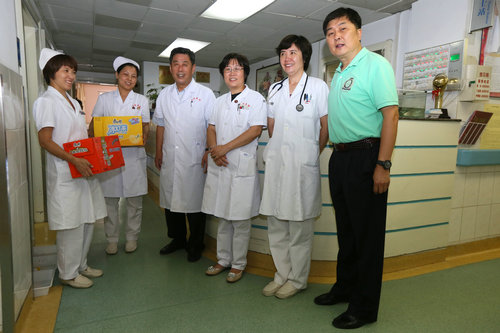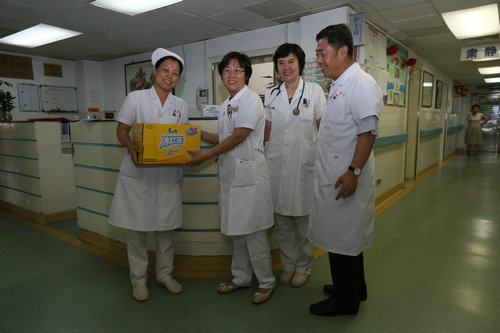 8月7日,時(shí)逢三伏、立秋,西苑醫(yī)院黨委、院領(lǐng)導(dǎo)在院工會(huì)的陪同下慰問(wèn)了堅(jiān)守一線(xiàn)工作崗位的值班人員,黨辦、人事處、醫(yī)務(wù)處、護(hù)理部、保衛(wèi)處、產(chǎn)業(yè)處等職能處室正副處長(zhǎng)及醫(yī)院伙食管理委員會(huì)成員也參加了慰問(wèn)。