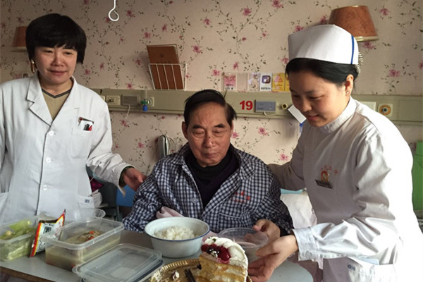 平日我病區(qū)的醫(yī)生護(hù)士稟承老主任徐鳳芹的傳統(tǒng),不僅對病患們進(jìn)行仔細(xì)觀察,詳盡詢問了解病情,認(rèn)真制定治療方案,精心負(fù)責(zé)地進(jìn)行醫(yī)療。而且針對患者的具體情況進(jìn)行有針對性的心理疏導(dǎo),她們與患者頻頻溝通,循循善誘,娓娓談心,讓患者感到如親人般的關(guān)懷,盡最大可能地減輕病患們的身心痛楚,讓他們早日康復(fù)。