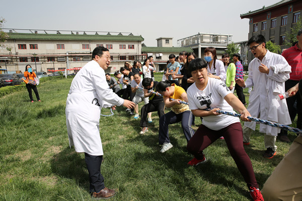 為活躍節(jié)日氣氛,緩解工作壓力,加強護(hù)士團(tuán)結(jié)協(xié)作的精神,讓護(hù)士們以更加飽滿的熱情投入到工作中,在2015年“5.12”國際護(hù)士節(jié)前夕,護(hù)理部及工會聯(lián)合舉辦了主題為“健康生活,快樂工作”的護(hù)士節(jié)系列活動之一——護(hù)士拔河比賽,何軍書記、段玲書記、徐鳳芹副院長、陳振酉副院長親臨現(xiàn)場為護(hù)士們加油助威,何軍書記還為比賽開哨。