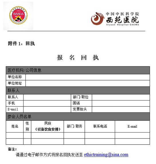 (1)網(wǎng)上報名:請?zhí)顚憟竺貓?zhí)單(見附件1),發(fā)送至會議專用郵箱: ethictraining@sina.com