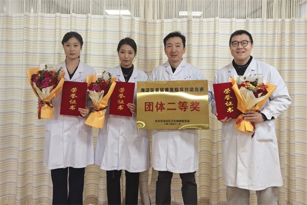 西苑醫(yī)院由醫(yī)務(wù)處處長柏燕軍、康復(fù)醫(yī)學(xué)科主任肖京帶隊(duì),選派康復(fù)治療師參與競賽,并在比賽中展示了扎實(shí)的專業(yè)基礎(chǔ)和技能水平。經(jīng)過激烈角逐,西苑醫(yī)院康復(fù)醫(yī)學(xué)科獲團(tuán)體總分二等獎,衡景景榮獲個(gè)人二等獎,張瀚之榮獲個(gè)人三等獎,喬丹榮獲個(gè)人優(yōu)秀獎。
