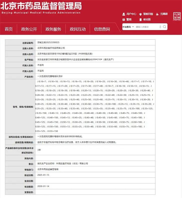 近日,由中國(guó)中醫(yī)科學(xué)院西苑醫(yī)院針灸科牽頭,與北京科技大學(xué)環(huán)境材料學(xué)院合作研發(fā)、受托北京科苑達(dá)醫(yī)療用品有限公司生產(chǎn)的一次性使用無(wú)菌電極針灸針(電極針灸針),成功獲批二類(lèi)醫(yī)療器械注冊(cè)證(注冊(cè)證編號(hào):京械注準(zhǔn)20252200025),這一創(chuàng)新產(chǎn)品的獲批不僅為針灸治療提供了更加有效、安全的工具,也為推動(dòng)中醫(yī)藥國(guó)際化進(jìn)程注入了新的動(dòng)力。