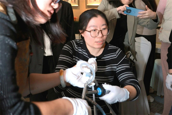 會(huì)議另設(shè)專(zhuān)題培訓(xùn)分會(huì)場(chǎng),聚焦臨床實(shí)用技術(shù)與操作傳承。西苑醫(yī)院婦科朱馥麗、盧翠敏教授以“宮腔鏡技術(shù)在生育力保護(hù)與疼痛治療中的應(yīng)用操作要點(diǎn)”為題作專(zhuān)題報(bào)告,并指導(dǎo)開(kāi)展了宮腔鏡及腹腔鏡模擬實(shí)操訓(xùn)練,強(qiáng)化動(dòng)手能力與操作規(guī)范。同時(shí),還安排了中醫(yī)適宜技術(shù)專(zhuān)題培訓(xùn)。西苑醫(yī)院婦科主治醫(yī)師陳燕霞與主管護(hù)師陳海燕系統(tǒng)講解了婦科常用針灸、膏摩、耳穴及灌腸技術(shù)的操作要點(diǎn),并進(jìn)行了現(xiàn)場(chǎng)演示與指導(dǎo),推動(dòng)中醫(yī)外治技法在婦科臨床中的規(guī)范應(yīng)用與傳承推廣。