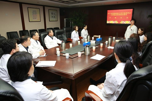 中國中醫(yī)科學院西苑醫(yī)院張允嶺院長、史大卓院長在聽取了李培紅主任的介紹后也分別致辭,并與臨床藥師們一起座談,就中藥臨床藥學學科發(fā)展的現狀與未來、中藥臨床藥師面臨的機遇與挑戰(zhàn)發(fā)表了各自的看法與體會,中藥臨床藥師的培養(yǎng)還處于探索階段,要在中藥臨床藥師的培養(yǎng)過程中不斷摸索,探索出更適合中藥臨床藥師成長的教學方法及模式;中藥臨床藥師應具備臨床藥師的知識結構與技能,同時具備中醫(yī)藥相關基礎知識,以中藥合理用藥為核心,直接參與臨床用藥,促進藥物合理應用、保證患者用藥安全。院領導鼓勵學員們珍惜此次學習機會,通過參與臨床查房、病例討論等臨床實踐,將臨床思維與藥學知識完美結合,順利完成學業(yè)。