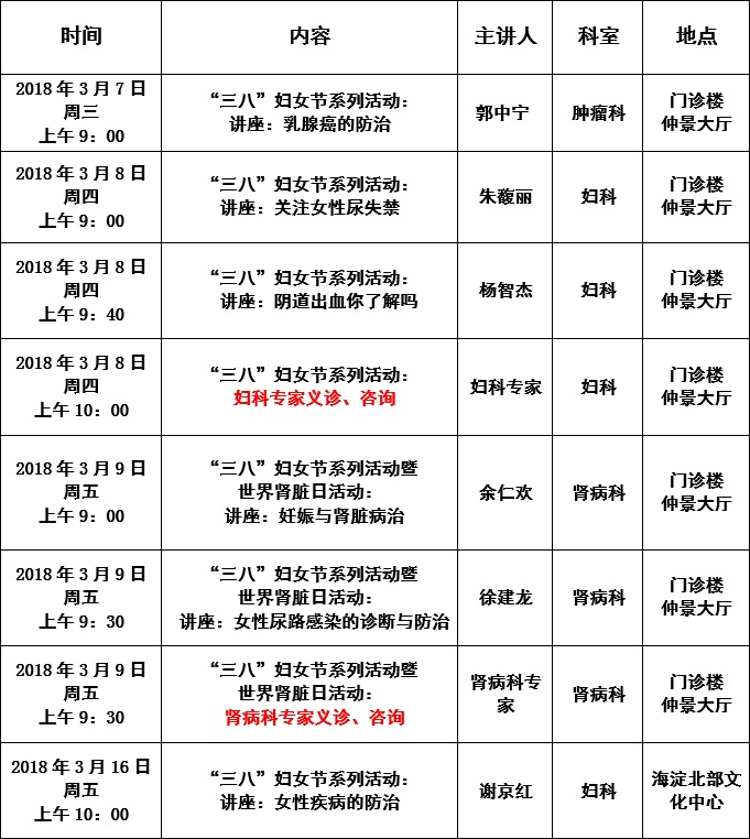 我院“三八”婦女節(jié)健康教育主題活動(dòng)安排表