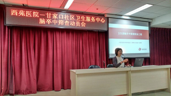 我院張允嶺副院長、徐鳳芹副院長、柏燕軍處長、社區(qū)衛(wèi)生服務中心張紹波院長分別就此次動員會講話,指出:腦卒中具有高發(fā)病率、高死亡率、高致殘率、高復發(fā)率等特點,近年來年輕化趨勢明顯。此次通過對甘家口社區(qū)設立“三級目標人群”,加強腦卒中高危人群篩查和干預項目質量管理,不治已病治未病,積極推動區(qū)域腦卒中防治網(wǎng)絡建設,規(guī)范中西醫(yī)治療,加強卒中中心內涵提升和質量控制;持續(xù)開展人群健康宣教工作,建立自我辨識工具、教會老百姓自我發(fā)現(xiàn)、及時就診,應用中醫(yī)藥積極干預。希望我們與社區(qū)醫(yī)院聯(lián)合起來,未病先防,降低腦卒中發(fā)病率、復發(fā)率、致殘率與死亡率,維護人民群眾的健康權益,促進醫(yī)療衛(wèi)生事業(yè)的發(fā)展,腦卒中篩查將發(fā)揮應有的積極作用。