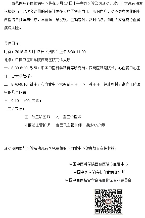 心血管中心開展“世界高血壓日及全國血管健康日”義診咨詢活動