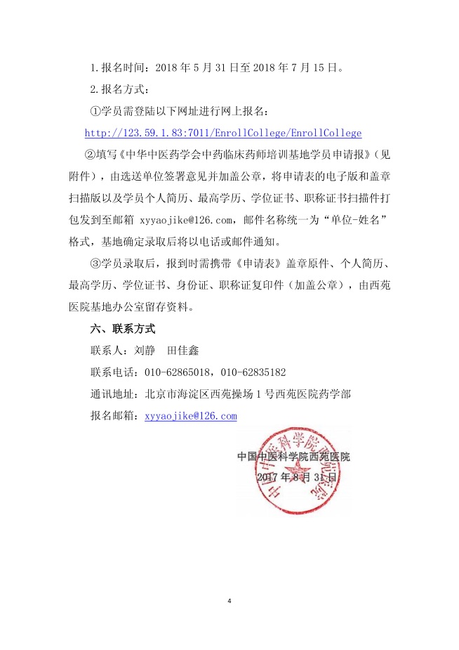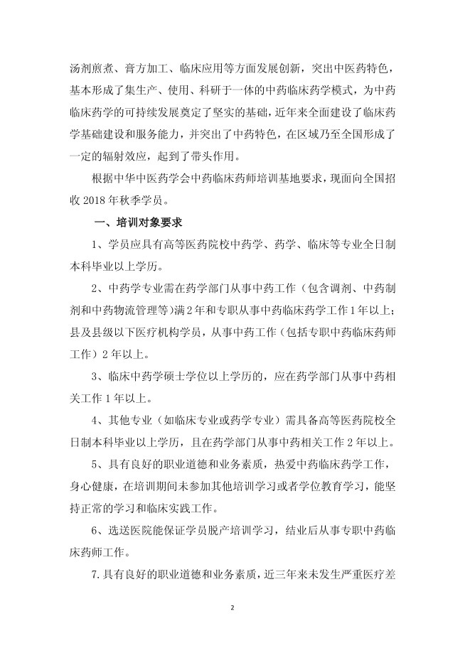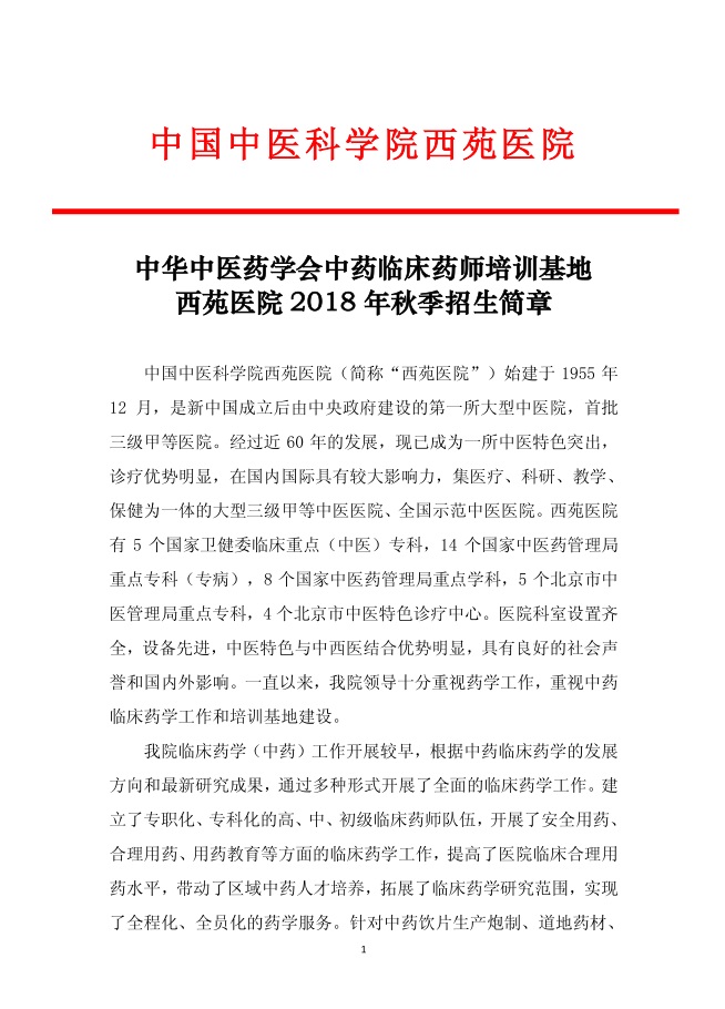 中華中醫(yī)藥學會中藥臨床藥師培訓基地西苑醫(yī)院2018年秋季招生簡章