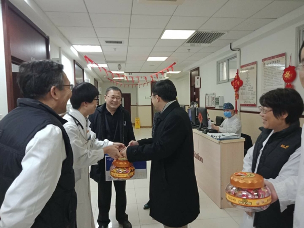 2月3日下午,中國(guó)中醫(yī)科學(xué)院院長(zhǎng)、中國(guó)工程院院士黃璐琦到中國(guó)中醫(yī)科學(xué)院西苑醫(yī)院慰問(wèn)一線(xiàn)醫(yī)護(hù)人員,向大家致以新春的問(wèn)候。中國(guó)中醫(yī)科學(xué)院辦公室主任曹煒,西苑醫(yī)院常務(wù)副院長(zhǎng)張?jiān)蕩X,副院長(zhǎng)史大卓、徐鳳芹、李秋艷及職能處室負(fù)責(zé)人等陪同慰問(wèn)。