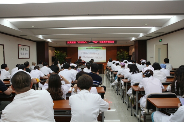 牢記使命 人民對(duì)美好生活的向往是我們的奮斗目標(biāo)》為題作主題報(bào)告。張?jiān)蕩X常務(wù)副院長(zhǎng)主持會(huì)議,西苑醫(yī)院“不忘初心,牢記使命”主題教育領(lǐng)導(dǎo)小組及其辦公室有關(guān)人員、職能處室負(fù)責(zé)人、各黨支部書(shū)記及黨員代表100余人參與學(xué)習(xí)。