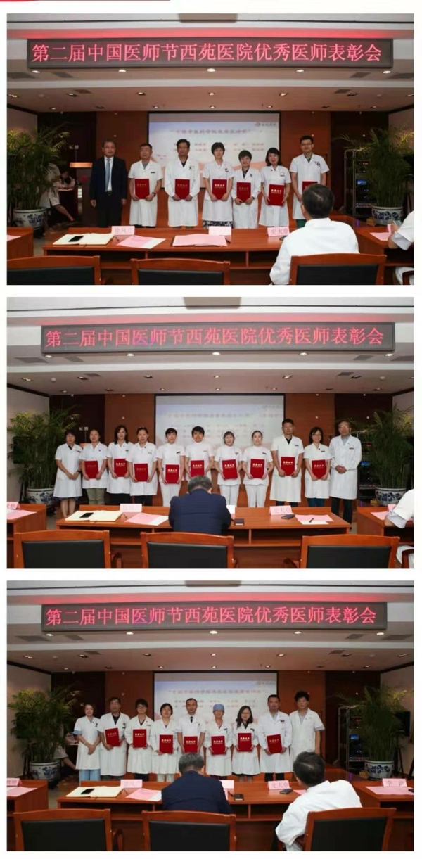 為弘揚“敬佑生命、救死扶傷、甘于奉獻、大愛無疆”的精神,表彰我院優(yōu)秀先進醫(yī)師,2019年8月19日,中國中醫(yī)科學院西苑醫(yī)院召開第二屆中國醫(yī)師節(jié)暨中國中醫(yī)科學院西苑醫(yī)院優(yōu)秀醫(yī)師表彰會。西苑醫(yī)院常務副院長張允嶺,副院長史大卓、徐鳳芹、李浩、李秋艷以及各職能處室負責人、科室主任、護士長、優(yōu)秀先進醫(yī)師代表等共同參加此次表彰會。表彰會由徐鳳芹主持。
