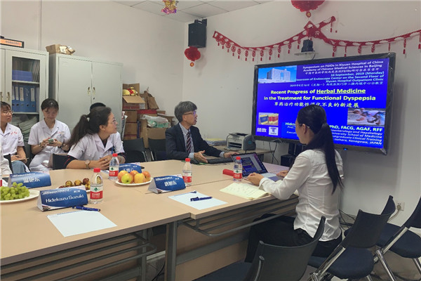 在學(xué)術(shù)交流活動中,Suzuki教授做題為《草藥治療功能性消化不良(FD)的新進(jìn)展》的專題報告。Suzuki教授對羅馬Ⅳ中FD的定義、分類及發(fā)病機(jī)制做了詳細(xì)的介紹并結(jié)合多項(xiàng)臨床研究進(jìn)行了闡釋,并重點(diǎn)介紹了本團(tuán)隊(duì)針對六君子湯治療FD的一項(xiàng)臨床研究。肖英蓮教授做題為《中草藥治療功能性胃腸?。?span lang="EN-US">FGIDs)的薈萃分析》的專題報告,肖教授結(jié)合目前臨床研究就團(tuán)隊(duì)的一項(xiàng)中草藥治療FGIDs的薈萃分析進(jìn)行了分析,結(jié)果顯示,中草藥治療FGIDs療效優(yōu)于安慰劑和傳統(tǒng)西藥,中草藥不良反應(yīng)發(fā)生率與傳統(tǒng)西藥無明顯差異。會上,我所王鳳云副主任簡要介紹了脾胃病研究所的基本情況和研究方向,并重點(diǎn)介紹了本團(tuán)隊(duì)學(xué)科帶頭人唐旭東教授及其帶領(lǐng)下在FD方面開展的研究及取得的成果。最后,各位專家就目前中草藥研究存在的問題進(jìn)行了熱烈探討,與會人員就中草藥的安慰劑制作、Hp耐藥、中成藥的推廣應(yīng)用等熱點(diǎn)、難點(diǎn)問題進(jìn)行了深入探討。