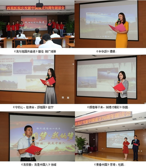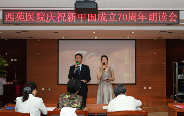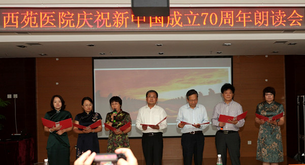 9月23日,由西苑醫(yī)院黨委主辦,院黨辦、工會(huì)、共青團(tuán)、婦工委聯(lián)合承辦的“慶祝新中國成立70周年朗讀會(huì)”勝利舉行。西苑醫(yī)院黨委委員、院領(lǐng)導(dǎo)、職能處室負(fù)責(zé)人、科室主任、護(hù)士長、黨支部書記、工會(huì)及婦工委代表約150人參加活動(dòng)。
