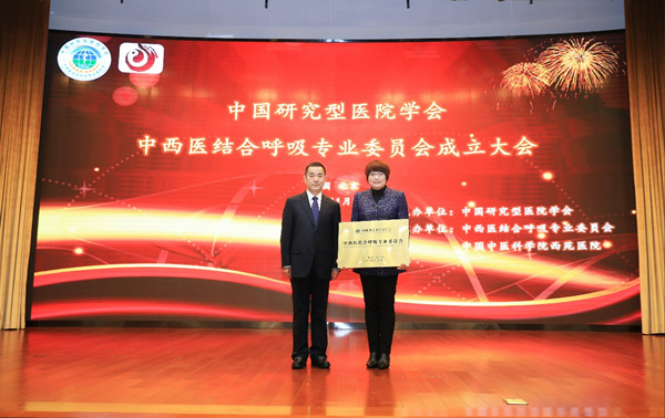 中國研究型醫(yī)院學(xué)會劉希華副會長為掛靠單位中國中醫(yī)科學(xué)院西苑醫(yī)院授牌