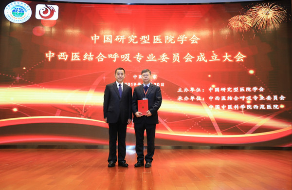 中國研究型醫(yī)院學(xué)會中西醫(yī)結(jié)合呼吸專業(yè)委員會聘請陳可冀院士、晁恩祥國醫(yī)大師為名譽(yù)主任委員,王書臣、張?jiān)蕩X、李宏軍等十三位專家為顧問;劉希華副會長和苗青主任委員為當(dāng)選的副主任委員:遼寧中醫(yī)藥大學(xué)附屬第二醫(yī)院省中醫(yī)肺病重點(diǎn)實(shí)驗(yàn)室主任于雪峰教授、江蘇省中醫(yī)院副院長朱佳教授、新疆維吾爾自治區(qū)中醫(yī)院副院長李風(fēng)森教授、江西中醫(yī)藥大學(xué)附屬醫(yī)院副院長劉良徛教授、山東中醫(yī)院大學(xué)附屬醫(yī)院副院長張偉教授、浙江省中醫(yī)院副院長楊珺超教授、四川華西醫(yī)院呼吸科副主任毛兵教授、河南中醫(yī)學(xué)院第一附屬醫(yī)院科主任王至婉教授、上海中醫(yī)藥大學(xué)附屬曙光醫(yī)院科主任張煒教授、北京中醫(yī)藥大學(xué)東方醫(yī)院科主任史利卿教授、中國中醫(yī)科學(xué)院廣安門醫(yī)院科主任教授、中國中醫(yī)科學(xué)院西苑醫(yī)院孔偉教授及秘書長中國中醫(yī)科學(xué)院西苑醫(yī)院肺病科副主任樊茂蓉教授頒發(fā)聘書。