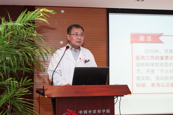 張允嶺代表醫(yī)院黨政領(lǐng)導班子向離退休老同志致以誠摯的問候和新年的祝福,并匯報了2019年醫(yī)院各項工作情況、所取得的成績及下一年工作重點。2019年,在各位老專家、老領(lǐng)導的關(guān)懷下,西苑醫(yī)院各項重點工作落實到位,全面完成醫(yī)療、科研、教育以及基礎(chǔ)建設(shè)等各項目標任務(wù)。張允嶺指出,這些成績離不開廣大職工的努力,也離不開老同志們的關(guān)心、鼓勵與支持,希望各位老同志們一如既往關(guān)心支持醫(yī)院發(fā)展,繼續(xù)發(fā)揮正能量,為醫(yī)院發(fā)展建言獻策,助力醫(yī)院事業(yè)再上新臺階!