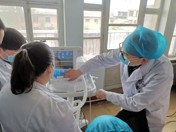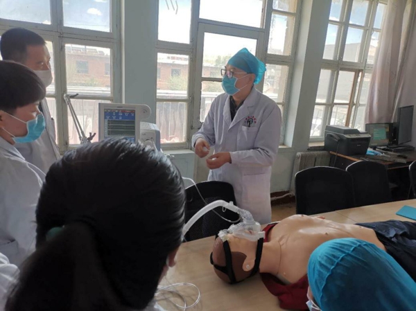 5月20日上午,化德縣中蒙醫(yī)院的全體醫(yī)師在樊長征醫(yī)師手把手的教學(xué)下學(xué)習(xí)了無創(chuàng)呼吸機(jī)的連接和參數(shù)選擇。樊長征醫(yī)師對每位醫(yī)師進(jìn)行了從連接無創(chuàng)呼吸機(jī)到參數(shù)調(diào)節(jié)的考核,確保了每位化德縣中蒙醫(yī)院的醫(yī)師可在緊急情況下正確、高效地使用無創(chuàng)呼吸機(jī)。