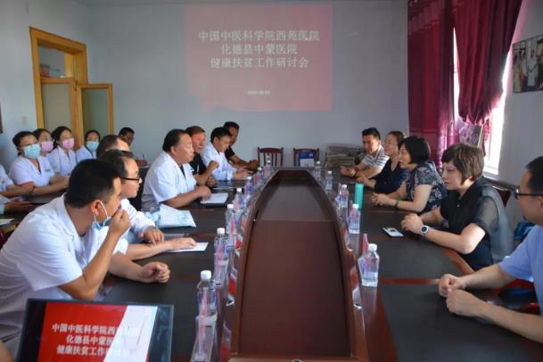 8月6日下午,由中國中醫(yī)科學(xué)院西苑醫(yī)院、化德縣中蒙醫(yī)院主辦的健康扶貧巡回診療線下線上培訓(xùn)會順利舉行?;驴h中蒙醫(yī)院、縣醫(yī)院、蓮德醫(yī)院的醫(yī)護(hù)人員在中蒙醫(yī)院首次啟用的新門診綜合大樓多功能會議室參加培訓(xùn),山西省五寨縣中醫(yī)院、內(nèi)蒙古庫倫旗蒙醫(yī)醫(yī)院、河北省阜平縣中醫(yī)醫(yī)院、山東省莒縣中醫(yī)醫(yī)院、北京市海淀區(qū)中醫(yī)醫(yī)聯(lián)體成員單位等的醫(yī)護(hù)人員線上參會。