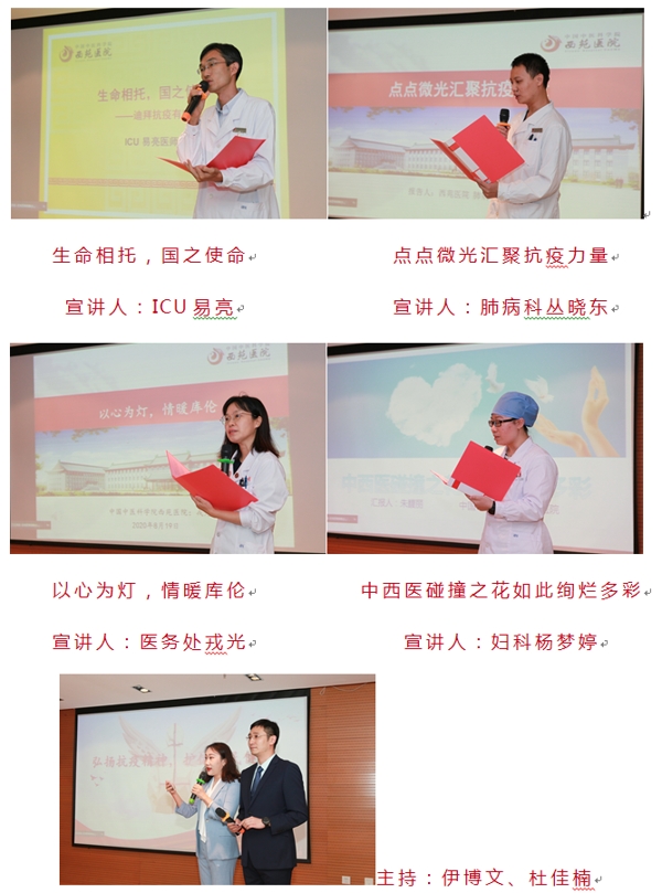 為引導(dǎo)我院職工向優(yōu)秀醫(yī)師學(xué)習(xí),堅定廣大干部職工的職業(yè)榮譽感和認(rèn)同感,激發(fā)創(chuàng)先爭優(yōu)意識,立足崗位、建功立業(yè),4名獲得表彰的優(yōu)秀醫(yī)師宣講先進(jìn)事跡。