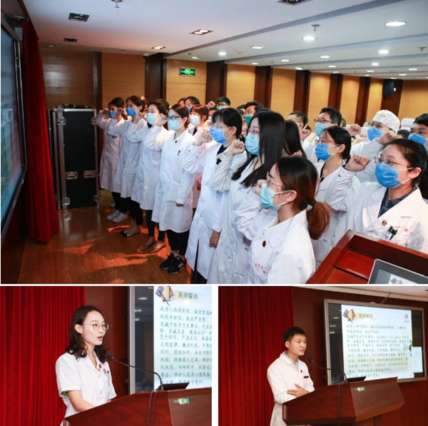 隨后,新職工莊嚴(yán)宣誓,鄭重承諾為弘揚(yáng)中醫(yī)藥衛(wèi)生事業(yè)、維護(hù)人類身心健康奮斗終生。張菀桐代表老職工講話,總結(jié)出“熱愛”“責(zé)任”“感恩”三個(gè)關(guān)鍵詞,以期為新同事提供借鑒和幫助。曲華代表新職工分享了入職感受,將始終牢記“大醫(yī)博學(xué) 厚德濟(jì)民”的院訓(xùn),立足崗位,為醫(yī)院發(fā)展貢獻(xiàn)力量。