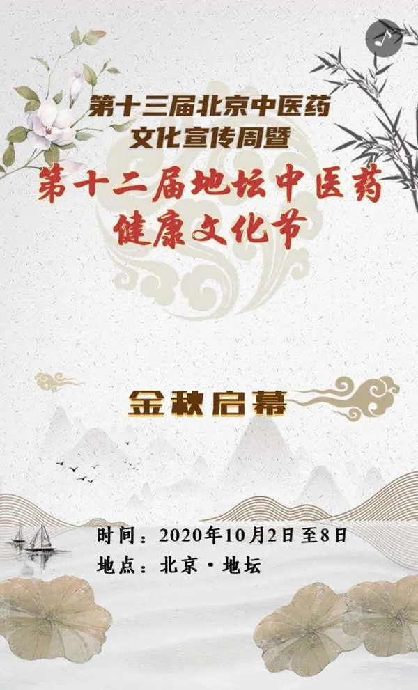 為推進(jìn)中醫(yī)藥文化普及傳播,提升中醫(yī)藥健康服務(wù)能力,我局定于2020年10月2日至10月8日舉辦第十三屆北京中醫(yī)藥文化宣傳周暨第十二屆地壇中醫(yī)藥健康文化節(jié)活動(dòng),主會(huì)場(chǎng)設(shè)在地壇公園。