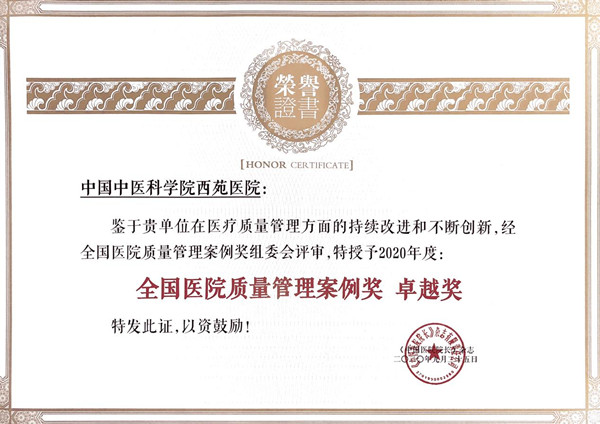2020年9月25日至27日,“第十四屆中國醫(yī)院院長年會(huì)”在廈門國際會(huì)議中心盛大召開。全國醫(yī)院質(zhì)量管理領(lǐng)域的專家、學(xué)者及代表匯聚一堂,對(duì)2020年全國醫(yī)院管理先進(jìn)案例進(jìn)行表彰,西苑醫(yī)院副院長徐鳳芹代表醫(yī)院出席會(huì)議,并獲頒“全國醫(yī)院質(zhì)量管理案例獎(jiǎng)”卓越獎(jiǎng)。