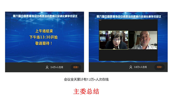 2020年11月21日全天,由中國(guó)醫(yī)師協(xié)會(huì)、中國(guó)醫(yī)師協(xié)會(huì)中西醫(yī)結(jié)合醫(yī)師分會(huì)主辦,中國(guó)中醫(yī)科學(xué)院西苑醫(yī)院、北京市中醫(yī)脾胃病研究所和國(guó)家中醫(yī)藥管理局脾虛重點(diǎn)研究室聯(lián)合承辦的“第六屆中國(guó)醫(yī)師協(xié)會(huì)中西醫(yī)結(jié)合醫(yī)師分會(huì)消化病學(xué)術(shù)會(huì)議”以線上形式成功舉辦。本次會(huì)議邀請(qǐng)了來(lái)自全國(guó)消化病領(lǐng)域的21位中西醫(yī)專家,圍繞消化道“炎癌轉(zhuǎn)化”的主題進(jìn)行精彩的報(bào)告,累計(jì)在線人數(shù)超過(guò)了7.2萬(wàn),營(yíng)造了良好的學(xué)術(shù)氛圍,為全國(guó)同道提供了一場(chǎng)豐富的學(xué)術(shù)盛宴。