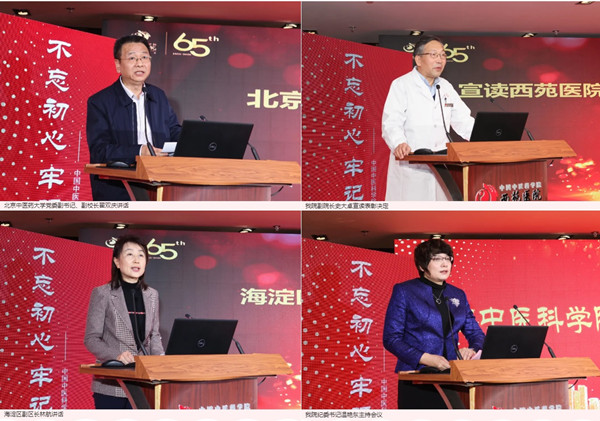 春秋代序,歲月不居,三山五園腹地,中國(guó)中醫(yī)科學(xué)院西苑醫(yī)院迎來(lái)建院65周年。2020年12月16日,中國(guó)中醫(yī)科學(xué)院西苑醫(yī)院建院六十五周年表彰大會(huì)隆重舉行。我院上級(jí)主管單位國(guó)家中醫(yī)藥管理局、中國(guó)中醫(yī)科學(xué)院及院屬二級(jí)院所領(lǐng)導(dǎo),以及國(guó)家發(fā)展改革委、國(guó)家藥品監(jiān)督管理總局藥品審評(píng)中心、北京中醫(yī)藥大學(xué)、北京市中醫(yī)管理局、海淀區(qū)政府、海淀區(qū)衛(wèi)健委、海淀區(qū)文明辦的領(lǐng)導(dǎo)、來(lái)賓出席會(huì)議。我院中國(guó)科學(xué)院院士、國(guó)醫(yī)大師、全國(guó)名中醫(yī)、首都國(guó)醫(yī)名師、院領(lǐng)導(dǎo)、老專家、老領(lǐng)導(dǎo)等百余人參加了會(huì)議。定點(diǎn)扶貧單位代表、京津冀協(xié)同發(fā)展單位代表、京寧協(xié)同發(fā)展單位代表等線上參會(huì)。