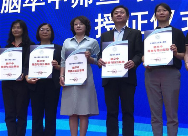 (中國中醫(yī)科學(xué)院西苑醫(yī)院李秋艷副院長參加國家衛(wèi)生健康委腦卒中篩查與防治工程委員會(huì)舉辦的授牌儀式 左三)