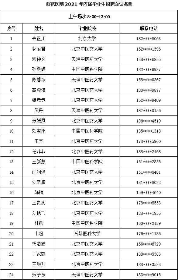 詳見《西苑醫(yī)院2021年應(yīng)屆畢業(yè)生招聘面試名單》
