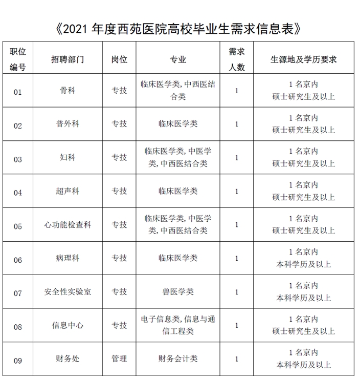 根據(jù)工作需要,2021年中國中醫(yī)科學(xué)院西苑醫(yī)院第二批公開招聘工作人員9名?,F(xiàn)將有關(guān)事項(xiàng)公告如下: