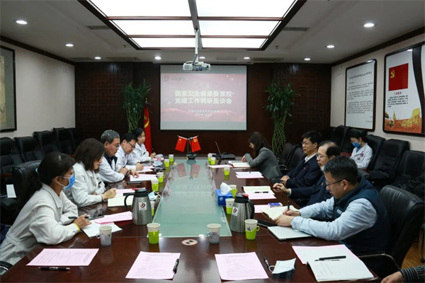 2022年1月4日,國家衛(wèi)生健康委干部培訓(xùn)中心(國家衛(wèi)生健康委黨校)主任(常務(wù)副校長)許培海、副主任(副校長)張光鵬等一行到我院調(diào)研黨建工作。我院黨委書記張允嶺,黨委副書記、院長劉震,黨委副書記李秋艷等參加座談。劉震主持座談會。