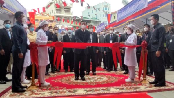 3月21日,駐柬埔寨大使王文天同洪森首相在金邊共同出席考斯瑪中柬友誼醫(yī)院?jiǎn)⒂脙x式。