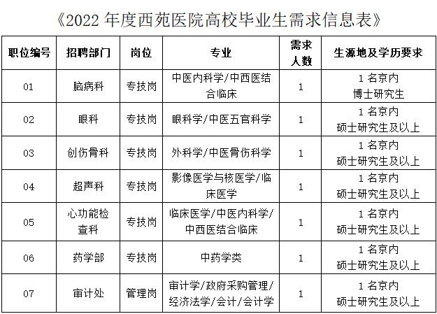 根據(jù)工作需要,2022年中國(guó)中醫(yī)科學(xué)院西苑醫(yī)院公開(kāi)招聘應(yīng)屆畢業(yè)生7名(第二批)?,F(xiàn)將有關(guān)事項(xiàng)公告如下: