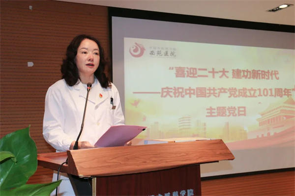 6月28日,西苑醫(yī)院開(kāi)展“喜迎二十大 建功新時(shí)代——慶祝中國(guó)共產(chǎn)黨成立101周年”主題黨日活動(dòng)?;顒?dòng)以線上、線下相結(jié)合的方式進(jìn)行,西苑醫(yī)院黨委書(shū)記張?jiān)蕩X、總會(huì)計(jì)師劉輝、黨委副書(shū)記李秋艷及黨委委員、紀(jì)委委員、在京在職黨支部書(shū)記、新黨員、黨員代表參加主會(huì)場(chǎng)活動(dòng),援柬埔寨中醫(yī)抗疫醫(yī)療隊(duì)臨時(shí)黨支部、京外黨支部、離退休黨支部、學(xué)生黨支部和在職黨支部的其他黨員線上參加。主題黨日活動(dòng)由李秋艷主持。