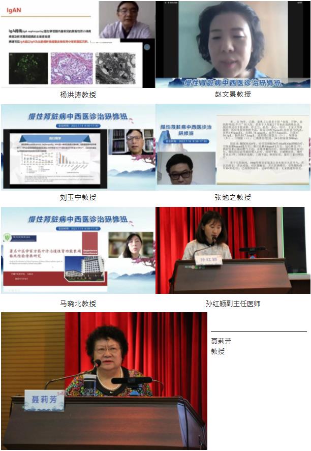 下午會議聚焦名老中醫(yī)傳承經(jīng)驗主題,楊洪濤教授對IgA腎病中西醫(yī)結(jié)合診療進行了全面詳細的講解,趙文景教授講述了單純運用中藥治療微小病變的經(jīng)驗,劉玉寧教授分享了霧霾致膜性腎病的中醫(yī)病機探討與治療思路,張勉之教授介紹了中西醫(yī)結(jié)合在慢性腎臟疾病慢加急中的有效干預并分享了補腎活血法在慢性腎臟病治療中的作用,馬曉北教授回顧了著名中醫(yī)學家方藥中生平并分享了方老診治慢性腎功能衰竭臨床經(jīng)驗的傳承研究,孫紅穎副主任醫(yī)師介紹了聶莉芳教授活血化瘀法辨治慢性腎臟病的經(jīng)驗,聶莉芳教授結(jié)合醫(yī)案講授了慢性腎臟病常用經(jīng)驗方及其具體臨床運用要點。
