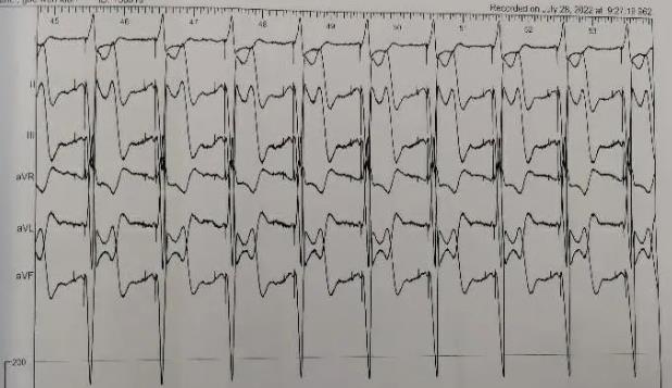 患者高某某,女,100歲,以“間斷心慌13年余,加重半月”于2022年07月25日收入院?;颊?span lang="EN-US">13年前于外院行起搏器植入術(shù)。半月前,患者間斷心慌癥狀加重,就診于我院門診,查動態(tài)心電圖提示竇性停博及長RR間期,考慮原起搏器電池耗竭,決定為其行起搏器更換術(shù)??紤]到患者百歲高齡,身體各器官機(jī)能減退,手術(shù)充滿挑戰(zhàn)。在完善相關(guān)術(shù)前檢查,充分的圍術(shù)期準(zhǔn)備后,患者順利實(shí)施手術(shù),一周后恢復(fù)出院。