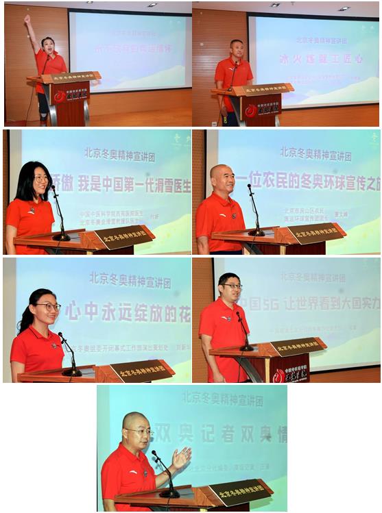 參加宣講報(bào)告會(huì)的7位宣講員都是各行各業(yè)在北京冬奧會(huì)和冬殘奧會(huì)申辦、籌辦、舉辦過程中,支持冬奧、參與冬奧、奉獻(xiàn)冬奧的典型人物。第9屆殘奧會(huì)冠軍、北京冬殘奧會(huì)火炬手劉玉坤講述了在奪冠路上迎難而上、奮力拼搏的感人故事;首鋼園運(yùn)動(dòng)中心制冰師劉博強(qiáng),中國中醫(yī)科學(xué)院西苑醫(yī)院醫(yī)生、北京冬奧會(huì)滑雪救援隊(duì)醫(yī)生付妍,北京市房山區(qū)農(nóng)民、奧運(yùn)環(huán)球宣傳團(tuán)團(tuán)長曹文峰,北京冬奧組委開閉幕式工作部演出策劃協(xié)調(diào)處主管劉新華,中國聯(lián)通北京分公司冬奧辦公室主任張嘉,新華社北京分社編委、高級(jí)記者汪涌等宣講員,通過自己的親歷親聞,多角度、全方位、立體式地為大家講述了在籌辦、舉辦過程中創(chuàng)造不平凡業(yè)績的北京冬奧故事。雖然他們的年齡不同、性別不同、職業(yè)不同,但都有一個(gè)共同點(diǎn),那就是他們的身上都生動(dòng)體現(xiàn)了“北京冬奧精神”。