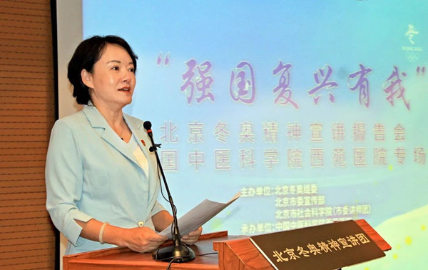 2022年8月16日,“強(qiáng)國復(fù)興有我”之北京冬奧精神宣講西苑醫(yī)院專場報(bào)告會(huì)舉行。本次活動(dòng)由北京冬奧組委、北京市委宣傳部、北京市社會(huì)科學(xué)院(市委講師團(tuán))聯(lián)合主辦,由中國中醫(yī)科學(xué)院西苑醫(yī)院承辦。北京冬奧組委新聞宣傳部副部長、北京市社會(huì)科學(xué)院副院長兼市委講師團(tuán)團(tuán)長肖峻峰,北京市社會(huì)科學(xué)院百姓宣講處處長劉梅,北京冬奧精神宣講團(tuán)、北京市衛(wèi)生健康委、中國中醫(yī)科學(xué)院西苑醫(yī)院領(lǐng)導(dǎo)同志出席活動(dòng)。報(bào)告會(huì)由西苑醫(yī)院黨委副書記李秋艷主持。近100名干部職工代表聆聽了宣講,現(xiàn)場氣氛熱烈,掌聲不斷。