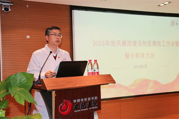 會(huì)議學(xué)習(xí)了習(xí)近平總書記在二十屆中央紀(jì)委二次全會(huì)上的重要講話精神和全會(huì)精神,傳達(dá)了國家中醫(yī)藥管理局、中國中醫(yī)科學(xué)院2023年黨風(fēng)廉政建設(shè)和反腐敗工作會(huì)議精神,對(duì)我院2023年工作進(jìn)行部署。同時(shí),會(huì)議通報(bào)了違紀(jì)違法典型案例,邀請(qǐng)海淀檢察院副檢察長陳雷及第二檢察部副主任王嬋媛做了關(guān)于醫(yī)療領(lǐng)域職務(wù)犯罪法律風(fēng)險(xiǎn)防控的專題講座。會(huì)議觀看了警示教育宣傳片,發(fā)放了警示教育書籍,組織中層以上干部簽署《領(lǐng)導(dǎo)干部廉潔從政、廉潔行醫(yī)承諾書》。
