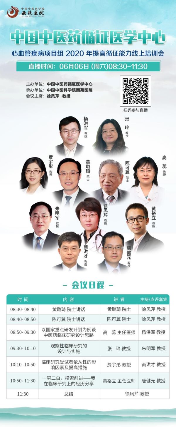 為推動中國中醫(yī)藥循證醫(yī)學(xué)中心心血管疾病項目組各項工作的順利開展,按照建設(shè)規(guī)劃,開展定期方法學(xué)培訓(xùn)是項目組中醫(yī)藥循證能力建設(shè)的重要任務(wù)之一。在當(dāng)前疫情情況下,2020年度項目組提高循證能力培訓(xùn)會于2020年6月6日改為線上舉行。本次培訓(xùn)會由心血管疾病項目組技術(shù)負(fù)責(zé)人中國中醫(yī)科學(xué)院西苑醫(yī)院徐鳳芹副院長組織并主持。 會議特邀中國中醫(yī)科學(xué)院院長、中國中醫(yī)藥循證醫(yī)學(xué)中心主任黃璐琦院士,中國科學(xué)院資深院士、國家中醫(yī)心血管病臨床醫(yī)學(xué)研究中心主任陳可冀院士在培訓(xùn)會上講話。 黃璐琦院士在講話中指出,習(xí)近平總書記在6月2日下午在京主持召開的專家學(xué)者座談會中提出要強化中醫(yī)藥特色人才建設(shè),打造一支高水平的國家中醫(yī)疫病防治隊伍。這其中就蘊含有要培養(yǎng)“具有較高水平的中醫(yī)藥循證研究人才”。說明這次培訓(xùn)會的舉行是很及時必要的?!?