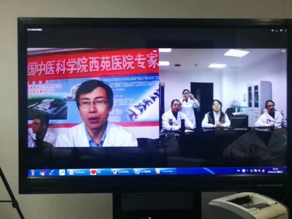 2019年3月6日上午10點30分,化德縣中蒙醫(yī)院與中國中醫(yī)科學院西苑醫(yī)院開展了第三例遠程會診,此次會診的專家是西苑醫(yī)院肺病科副主任樊茂蓉主任醫(yī)師、心血管2科副主任馬曉昌主任醫(yī)師、放射科主任任華主任醫(yī)師?;驴h中蒙醫(yī)院由掛職副院長李斌主持,副院長付成、醫(yī)務處主任趙飛、內(nèi)科主任魏文靜、掛職皮膚科副主任劉青云、掛職康復理療科副主任孫海花及各科骨干醫(yī)生等參加。 首先由主管醫(yī)生陳子怡將患者朱XX的病例進行了詳細的匯報,李斌對患者的病情及診療情況進行了補充,該患者男性,64歲,喘憋8年加重3年,曾在鐵廠工作,在當?shù)囟嗉衣殬I(yè)病醫(yī)院診斷塵肺,近3年加重,發(fā)作逐漸頻繁,目前每隔約1月余即加重,3天前再次加重,喘憋嚴重,咳嗽痰多,端坐呼吸,口苦便秘,雙下肢水腫。既往房顫病史。吸煙30余年。雙肺大量干濕啰音,干啰音較重,心音低…