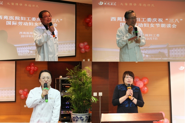 2019年3月7日,西苑醫(yī)院婦工委舉辦慶祝“三八”國際勞動婦女節(jié)朗讀會及女職工生活講座。活動由紀委書記、婦工委主任溫艷東主持,張允嶺常務副院長、史大卓副院長、李浩副院長、劉輝總會計師、李秋艷副院長出席,婦工委委員、婦工委組長、女職工代表等百余人參加活動。 紀委書記、婦工委主任溫艷東向與會人員介紹了西苑醫(yī)院婦工委成立背景、發(fā)展歷程及工作計劃。與會院領導向全院女職工致以了節(jié)日的問候,并向婦工委小組長代表贈書。 朗讀會上,表演者們飽含深情地分享美好文章,或抑揚頓挫,或宛轉(zhuǎn)悠揚,激起陣陣掌聲。腦病科主任、婦工委委員毛麗軍圍繞“職場女性如何自我減壓”開展主題講座,到場職工均表示受益匪淺。 本次活動旨在全面貫徹落實習近平新時代中國特色社會主義思想及中國婦女十二大精神,按照中醫(yī)局“大學習、深調(diào)…