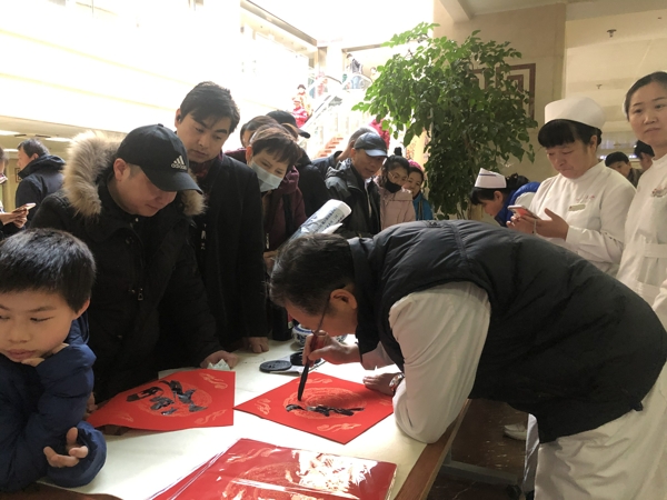 2019年1月28日是臘月二十三,農(nóng)歷“小年”,春節(jié)大幕徐徐拉開(kāi)。西苑醫(yī)院在門(mén)診大廳舉辦“小年送福送健康”主題活動(dòng)。常務(wù)副院長(zhǎng)張?jiān)蕩X,副院長(zhǎng)史大卓、李秋艷,紀(jì)委書(shū)記溫艷東及總會(huì)計(jì)師劉輝等領(lǐng)導(dǎo)參加活動(dòng)并為患者送祝福,史大卓副院長(zhǎng)更是親自揮毫潑墨帶領(lǐng)干部職工為患者寫(xiě)福、寫(xiě)春聯(lián),傳遞愛(ài)心和祝愿。據(jù)悉,當(dāng)天上午共送出500張福字、百余幅對(duì)聯(lián)。 小年是整個(gè)農(nóng)歷春節(jié)的序幕,寄托著中國(guó)人辭舊迎新、迎祥納福的美好愿望。500余個(gè)手寫(xiě)福字寄托著西苑醫(yī)院全體職工對(duì)廣大患者朋友的祝福:祝愿大家在新的一年吉祥如意、身體健康、心想事成! 西苑醫(yī)院