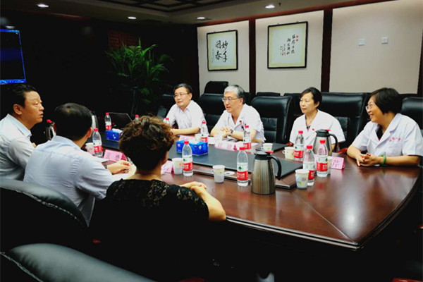 8月11日下午,寧夏石嘴山市中醫(yī)院由張懋院長(zhǎng)帶隊(duì)一行4人來訪我院。我院唐旭東院長(zhǎng)、劉婕書記、張?jiān)蕩X常務(wù)副院長(zhǎng)、徐鳳芹副院長(zhǎng)等多位院領(lǐng)導(dǎo)均參會(huì),就兩院對(duì)口支援相關(guān)事宜與來訪人員進(jìn)行會(huì)晤。 石嘴山市中醫(yī)院是我院對(duì)口支援單位之一,于2013年7月簽訂協(xié)議。迄今為止,我院通過京寧中醫(yī)臨床優(yōu)秀人才研修項(xiàng)目為石嘴山市中醫(yī)院培養(yǎng)了一大批業(yè)務(wù)才人,均為醫(yī)院各臨床、醫(yī)技科室主任或業(yè)務(wù)骨干。同時(shí),我院每年由院領(lǐng)導(dǎo)帶隊(duì),派出專家團(tuán)隊(duì)赴石嘴山進(jìn)行業(yè)務(wù)指導(dǎo)、出診、座談等幫扶活動(dòng)。今年上半年,我院還在石嘴山市中醫(yī)院建立了魏子孝傳承工作室并進(jìn)行了拜師儀式。兩院之間聯(lián)系更加緊密,對(duì)口支援工作開展的極為順暢有效。 石嘴山市中醫(yī)院本次來訪我院,由張懋院長(zhǎng)帶隊(duì),醫(yī)療副院長(zhǎng)吳良勇、藥劑科主任及門辦主任隨行,除院領(lǐng)導(dǎo)外,我院院辦…