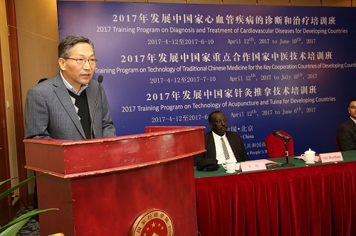 近日,由商務(wù)部主辦、我院承辦的“2017年發(fā)展中國(guó)家重點(diǎn)合作國(guó)家中醫(yī)藥技術(shù)培訓(xùn)班”、“2017年發(fā)展中國(guó)家心血管疾病診斷和治療培訓(xùn)班”、“2017年發(fā)展中國(guó)家針灸推拿技術(shù)培訓(xùn)班”順利開班,來(lái)自南蘇丹、巴拿馬、蒙古等國(guó)家的85名專業(yè)技術(shù)人員將在我院接受為期二至三個(gè)月的培訓(xùn)。 2017年,我院共獲得商務(wù)部立項(xiàng)12期中醫(yī)藥援外培訓(xùn)項(xiàng)目,較往年有了大幅增長(zhǎng)。中醫(yī)藥短期培訓(xùn)班也將在推動(dòng)中醫(yī)藥國(guó)際化發(fā)展、服務(wù)一帶一路國(guó)家戰(zhàn)略方面發(fā)揮更為積極的作用。 我院史大卓副院長(zhǎng)出席開班典禮 學(xué)員代表致辭 國(guó)合辦 徐峰