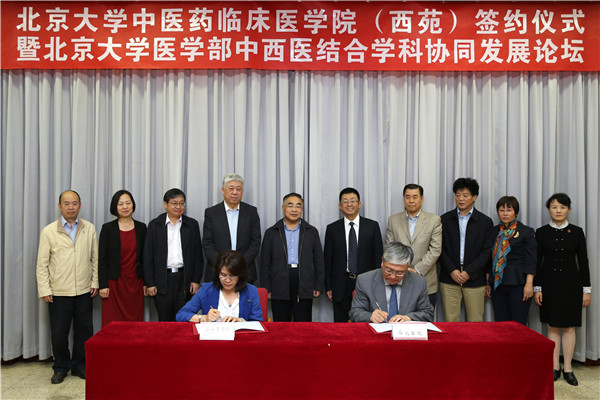 2015年10月15日下午,北京大學(xué)中醫(yī)藥臨床醫(yī)學(xué)院(西苑)簽約儀式在北京大學(xué)醫(yī)學(xué)部隆重舉行。國(guó)家中醫(yī)藥管理局科技司曹洪欣司長(zhǎng),中國(guó)中醫(yī)科學(xué)院院長(zhǎng)張伯禮院士,北京市政府副秘書長(zhǎng)、市食品藥品監(jiān)督管理局局長(zhǎng)張志寬,北京市衛(wèi)生和計(jì)劃生育委員會(huì)主任方來英,北京市中醫(yī)管理局屠志濤局長(zhǎng)、禹震副局長(zhǎng)、羅增剛副局長(zhǎng)等受邀出席了本次活動(dòng)。簽約雙方代表北京大學(xué)常務(wù)副校長(zhǎng)、醫(yī)學(xué)部常務(wù)副主任柯楊,北京大學(xué)醫(yī)學(xué)部副主任段麗萍、方偉崗以及中國(guó)中醫(yī)科學(xué)院西苑醫(yī)院院長(zhǎng)唐旭東,黨委副書記兼紀(jì)委書記段玲,副院長(zhǎng)徐鳳芹、李浩等見證了本次儀式。北京大學(xué)醫(yī)學(xué)部相關(guān)部門代表、醫(yī)學(xué)部部分校友代表也出席活動(dòng),共同慶祝北京大學(xué)中醫(yī)藥臨床醫(yī)學(xué)院的建立。 北京大學(xué)中醫(yī)藥臨床醫(yī)學(xué)院(西苑)是由中國(guó)中醫(yī)科學(xué)院西苑醫(yī)院與北京大學(xué)醫(yī)學(xué)部協(xié)作共建而成,院址設(shè)…