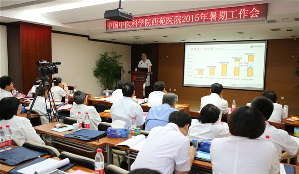 8月1日,我院召開2015年暑期工作會議。醫(yī)院領(lǐng)導(dǎo)、職能處室負責人、各科主任、護士長、各支部書記以及部分老專家近200人參加會議。中國中醫(yī)科學院常務(wù)副書記王煉到會議并講話。 上午的會議由院黨委副書記兼紀委書記段玲主持。會上,院領(lǐng)導(dǎo)徐鳳芹、劉婕、李浩、史大卓、陳振酉、劉輝以及段玲就分管的醫(yī)療、科研、教育、后勤、信息、財務(wù)、紀檢等工作進行了回顧,并對下半年工作分別進行了規(guī)劃與部署。 唐旭東院長全面回顧了醫(yī)院上半年工作所取得成績并就下半年全院工作重點進行了部署。上半年,醫(yī)院圍繞全年工作會提出的“抓住一個方針、兩個輪子”發(fā)展思路,穩(wěn)步推進各項工作。醫(yī)療、科研、教育等業(yè)務(wù)取得較快發(fā)展,醫(yī)院門診量近118萬人次,出院病人數(shù)超過8532人次增長近10個百分點,各項指標均達到歷史最好水平,為實現(xiàn)全年目標打下堅實基礎(chǔ)。下半…