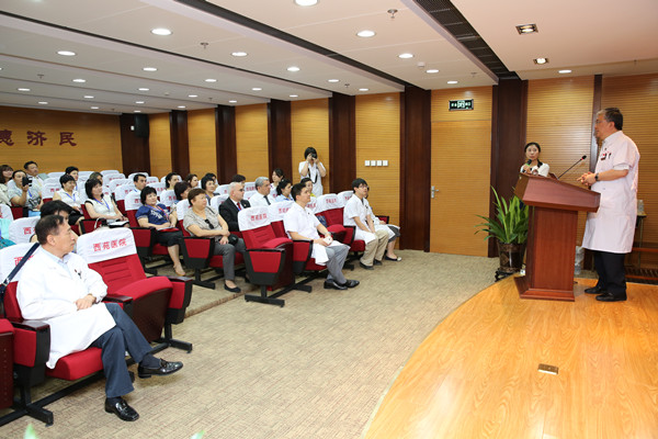 5月25日我院院慶系列活動(dòng)“外賓開(kāi)放日”順利舉行,45位來(lái)自俄羅斯、塔吉克斯坦、烏茲別克斯坦、摩爾多瓦、吉爾吉斯斯坦等國(guó)衛(wèi)生部、國(guó)立醫(yī)學(xué)院與研究所的衛(wèi)生官員與研究人員走進(jìn)西苑醫(yī)院,近距離體驗(yàn)了我院的國(guó)際醫(yī)療服務(wù)與中醫(yī)特色科室建設(shè),通過(guò)與醫(yī)院領(lǐng)導(dǎo)、臨床專(zhuān)家的交流,進(jìn)一步加深了對(duì)中醫(yī)院的了解。 唐旭東院長(zhǎng)代表醫(yī)院向來(lái)訪(fǎng)的外賓表示了熱烈的歡迎,并簡(jiǎn)要介紹了醫(yī)院的發(fā)展歷史與國(guó)際醫(yī)療的建設(shè)情況。來(lái)自摩爾多瓦的露西女士親身體驗(yàn)了我院國(guó)際醫(yī)療部的就診流程,她表示我院提供的英文分診、咨詢(xún)、引導(dǎo),掛號(hào)收費(fèi)無(wú)障礙溝通,專(zhuān)業(yè)醫(yī)助全程陪同,英文診療以及健康建議等服務(wù)給她留下了深刻的印象,對(duì)我院專(zhuān)家的診療服務(wù)非常滿(mǎn)意。許多外賓在我院專(zhuān)家的帶領(lǐng)下練習(xí)了“歸根氣功”,并對(duì)我院的中醫(yī)藥文化建設(shè)贊不絕口。 唐旭東院長(zhǎng)為“外…
