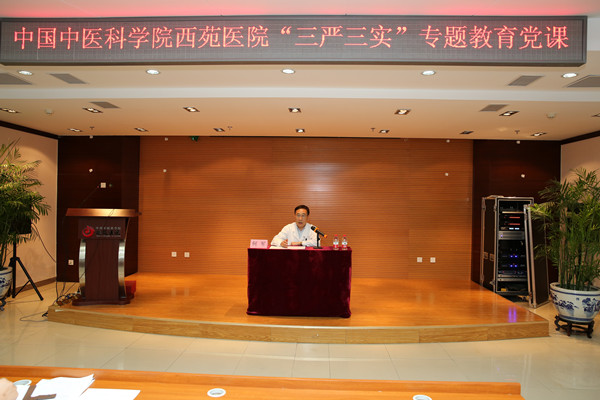 5月29日下午,中國(guó)中醫(yī)科學(xué)院西苑醫(yī)院黨委舉行 “三嚴(yán)三實(shí)”專(zhuān)題教育黨課暨動(dòng)員大會(huì)。院黨委委員、院領(lǐng)導(dǎo)、紀(jì)委委員、職能處室正副職、科室正主任、黨支部書(shū)記參加了大會(huì)。黨委副書(shū)記兼紀(jì)委書(shū)記段玲主持會(huì)議。 院長(zhǎng)唐旭東做了大會(huì)動(dòng)員,他對(duì)《中國(guó)中醫(yī)科學(xué)院西苑醫(yī)院“三嚴(yán)三實(shí)”專(zhuān)題教育實(shí)施方案》做了詳細(xì)解讀。他指出“三嚴(yán)三實(shí)”專(zhuān)題教育是群眾路線(xiàn)教育實(shí)踐活動(dòng)的延伸,是建立清正廉潔干部隊(duì)伍的基礎(chǔ),打造清廉務(wù)實(shí)高效部門(mén)的核心,是風(fēng)清氣正的關(guān)鍵。院黨委將嚴(yán)格按照專(zhuān)題教育的關(guān)鍵動(dòng)作組織開(kāi)展好工作。醫(yī)院中層以上領(lǐng)導(dǎo)干部要把深入開(kāi)展“三嚴(yán)三實(shí)”專(zhuān)題教育作為當(dāng)前一項(xiàng)重大政治任務(wù),要以身作則,當(dāng)標(biāo)桿、作示范,各分管院領(lǐng)導(dǎo)也要在主管工作范圍內(nèi)高質(zhì)量講好專(zhuān)題黨課,發(fā)揮好帶頭表率作用。院黨委將統(tǒng)籌推進(jìn)落實(shí),確保取得實(shí)效。 黨委…